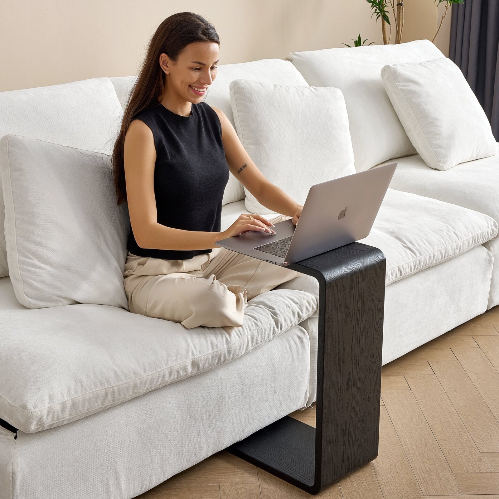 This round coffee table is designed for central placement within seating arrangements. The rounded shape supports easy movement around the table and fits well in compact or open living rooms. The surface provides functional space for daily household use.